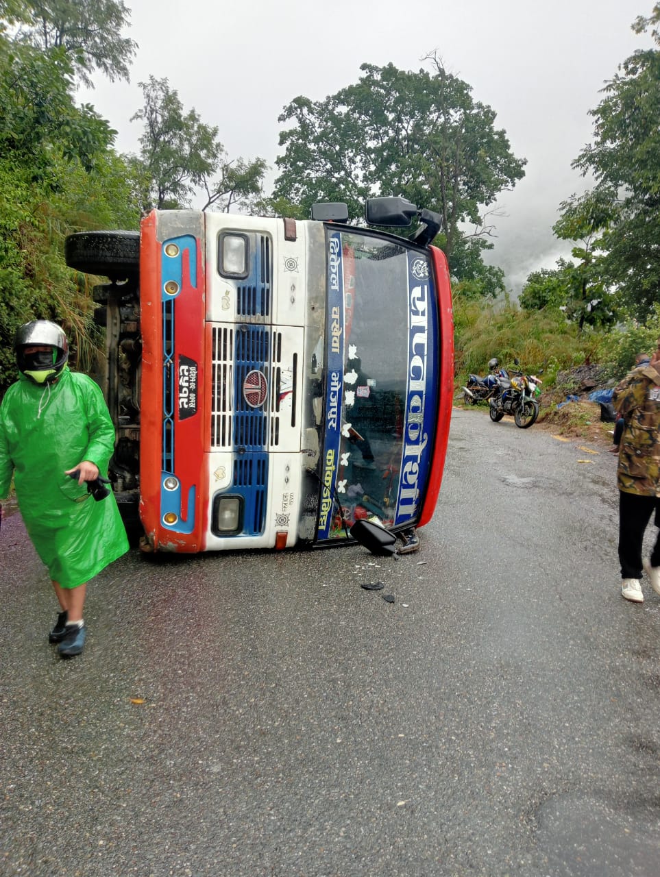 १४ कार्तिक,धनकुटा । धनकुटा नगरपालिका–९ तिनघुम्ति स्थित कोसी लोक मार्गमा आज बिहान दमकबाट दिक्तेलतर्फ जाँदै गरेको यात्रु बाहक बस दुर्घटना हुँदा एक जना घाइते भएकी छन्। प्रहरीका अनुसार प्र।१–०२–००१ ख ९५१९ नम्बरको बसको हावाको पाइप अचानक पड्किँदा गाडी अनियन्त्रित भई सडकमा पल्टिएको हो। दुर्घटनामा मोरङ, लेटाङ नगरपालिका–३ की ५५ बर्सिया मिना गुरुङ ढाडमा चोट लागी सामान्य घाइते भएकी छन्। उनलाई उपचारका लागि धनकुटा जिल्ला अस्पताल पठाइएको प्रहरीले जनाएको छ। बसमा रहेका अन्य २६ जना यात्रु सकुशल रहेको जिल्ला प्रहरी कार्यालय धनकुटाका प्रहरी उपरीक्षक शरतकुमार थापा क्षेत्रीले जानकारी दिनुभयो।