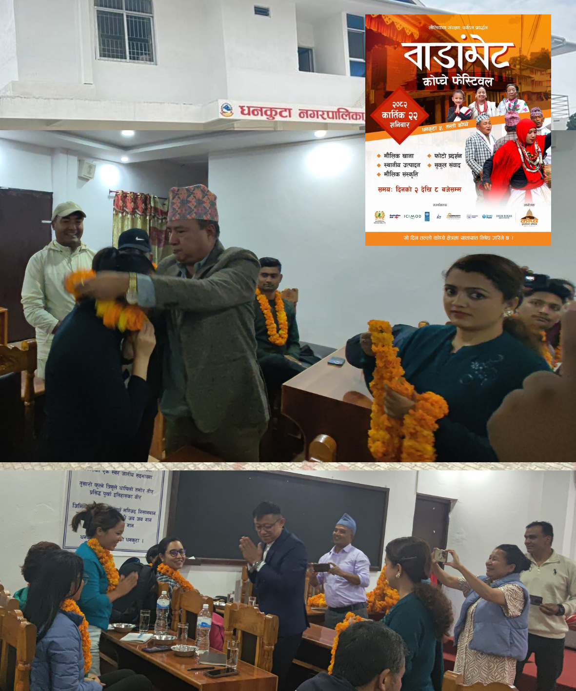 २० कातिक धनकुटा । धनकुटामा पाँच दिनसम्म “वाडाङ्मेट तथा कोप्चे सम्पदा पुनर्जागरण अभियान–२०८२ आयोजना हुने भएको छ । Australian Aid, ICIMOD, नेपाल पर्यटन बोर्ड,Smart paani,CHN,HUSADEC,Digo Bikas institute,आठपहरीया समाज , कोप्चे पुनजारण लगायतका संस्थाहरूको सहकार्यमा अभियान सुरु भएको हो । कार्तिक २४ गतेसम्म सञ्चालन हुने अभियानले धनकुटाको सांस्कृतिक, प्राकृतिक तथा सामुदायिक सम्पदाको पुनर्जागरण र जलवायु अनुकूल पर्यटन प्रवद्र्धन गर्न टेवा पुग्ने आयोजकले जनाएको छ । पाँच दिनसम्म चल्ने कार्यक्रममा स्थानीय संस्कृति, कला, संगीत, खाद्य प्रणाली र सामुदायिक एकताको प्रदर्शन हुने धनकुटा नगरपालिकाका प्रमुख तिन्तन तामाङले जानकारी दिए । उनले सम्पदा पुनस्थापना, स्वच्छ पानी प्रवद्र्धन, जलवायु–समावेशी पर्यटन, र सह–अस्तित्वका क्षेत्रमा सहयोगी संस्थाहरूको भुमिका हुने बताए । यो अभियानले नगरको गौरव, संस्कृति र पर्यटन विकासमा नयाँ ऊर्जा र सम्पदा संरक्षण, स्वच्छ वातावरण र दिगो पर्यटन प्रवद्र्धन हुने हुदा सबैको सहभागिताका लागि प्रमुख तामाङले आग्रह गरे।