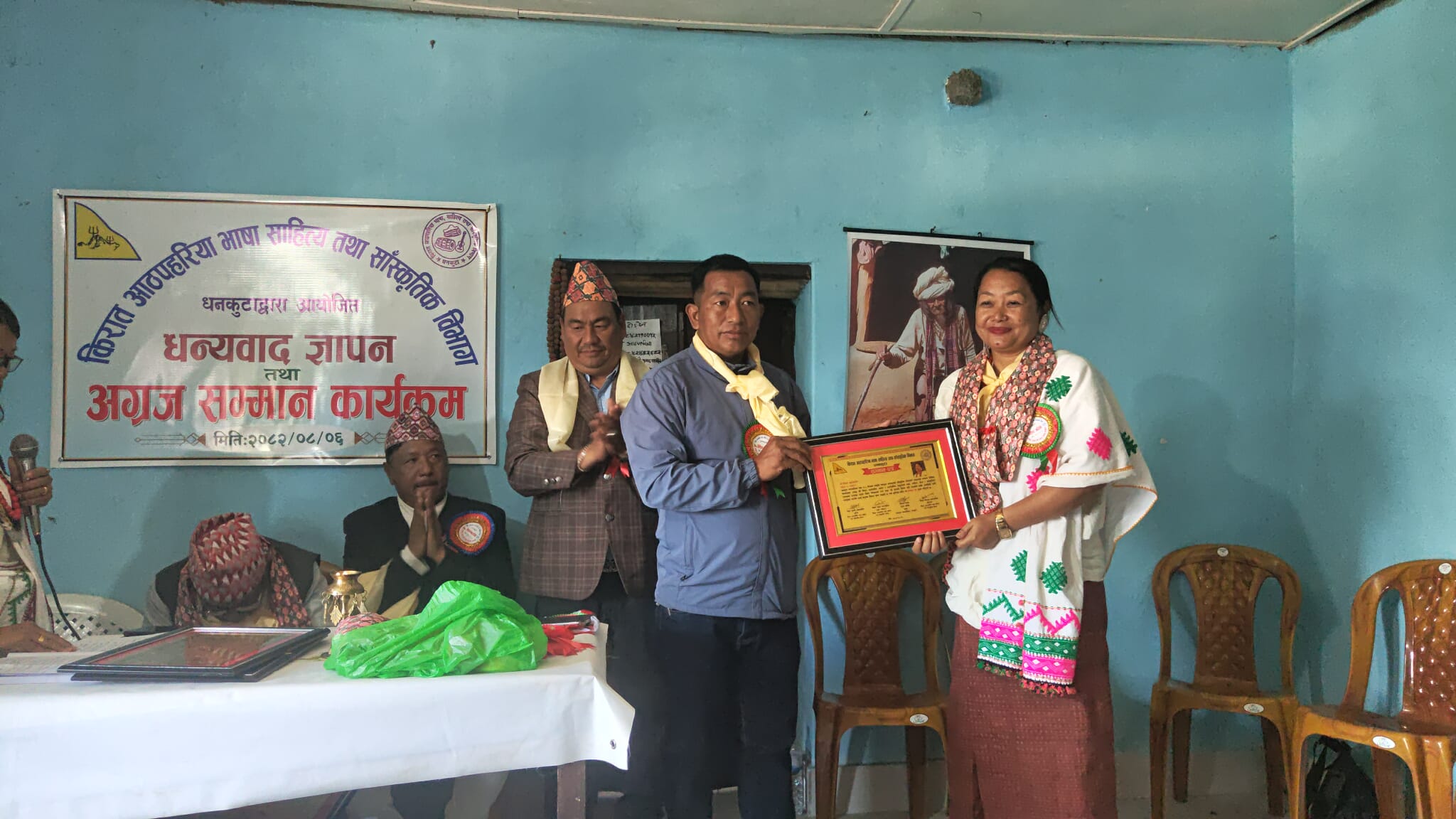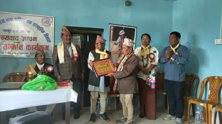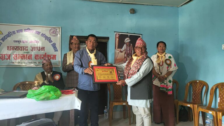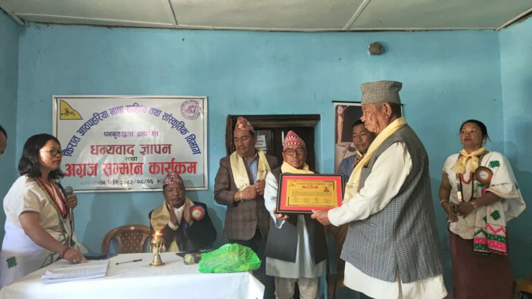 किरात आठपहरिया भाषा, साहित्य तथा सांस्कृतिक विभाग धनकुटाद्वारा आयोजित ‘धन्यवाद ज्ञापन तथा अग्रज सम्मान कार्यक्रम’ सम्पन्न भएको छ। कार्यक्रमा आठपहरिया समुदायको संस्थागत विकासमा उल्लेखनीय योगदान पुर्याउने अग्रजहरूलाई विशेष सम्मान गरिएको हो।