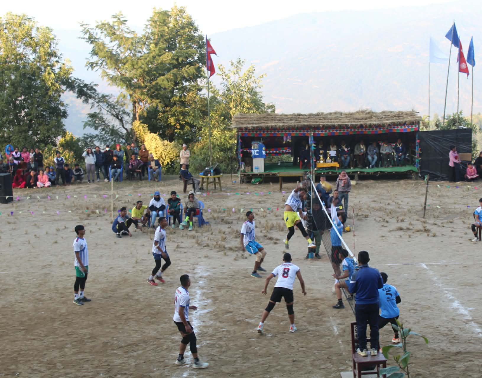 मंसिर २४ धनकुटा ।धनकुटाको सहिदभूमि गाउँपालिका वडा नं।(२ को ढोलमुखामा दोस्रो अन्तर पालिका स्तरीय पुुरुष भलिबल प्रतियोगितामा आज भएको खेलमा हतुवागढी भोजपुर र आमचोक गाउँपालिका भोजपुर विजयी हुँदै सेमिफाइनलमा प्रवेश गरेका छन् ।
