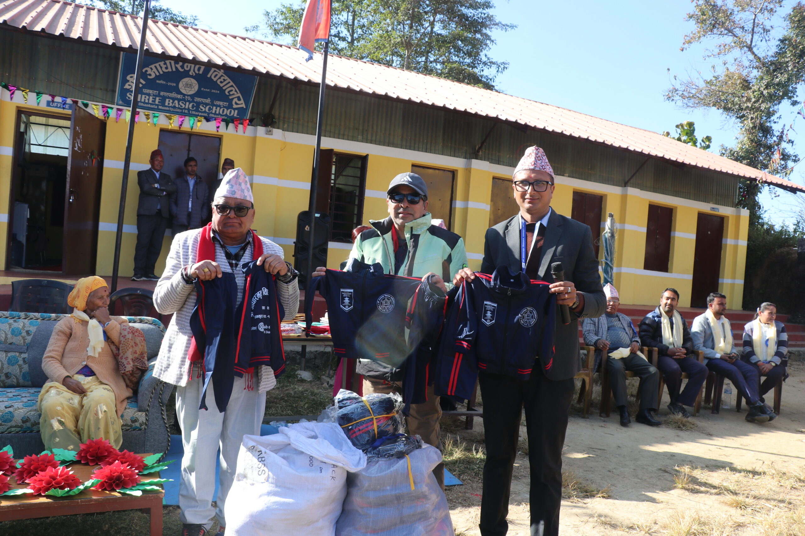 विद्यालयको ५८औँ वार्षिक उत्सवको अवसरमा आयोजित कार्यक्रममा करिब एक लाख रुपैयाँ बराबरका ७० थान ट्र्याक सुट वितरण गरिएको हो। रोटरी क्लबको तर्फबाट राजेश्वर बहादुर श्रेष्ठले विद्यालय व्यवस्थापन समिति अध्यक्ष तेज बहादुर कार्कीलाई ट्र्याक सुट हस्तान्तरण गर्नुभएको थियो।यसै अवसरमा विद्यालयले सहयोगदाता तथा विभिन्न व्यक्ति र संस्थालाई सम्मान गरेको छ। सम्मानित हुनेहरूमा विद्यालयका पूर्व प्रधानाध्यापक कमला दाहाल, शिक्षक भानुभक्त राई, सहयोगदाता राजेश्वर बहादुर श्रेष्ठ, शिक्षक हिमाल दाहाल, गुराँसे टी स्टेट प्रालि, रोटरी क्लब अफ पशुपति काठमाडौँलगायत स्रोत कक्षामा सहयोग पुर्याउने तीन दर्जनभन्दा बढी व्यक्ति तथा संस्थाहरू रहेका छन्।विद्यालयका प्रधानाध्यापक विनोद सुवेदीका अनुसार वार्षिक उत्सवकै अवसरमा विद्यालयमा स्थापना गरिएको अक्षयकोषबाट छात्रवृत्ति समेत प्रदान गरिएको छ।वि।सं। २०२४ सालमा स्थापना भएको सो विद्यालयमा हाल स्रोत कक्षा सहित कक्षा ८ सम्म ९६ जना विद्यार्थी अध्ययनरत रहेका छन्।