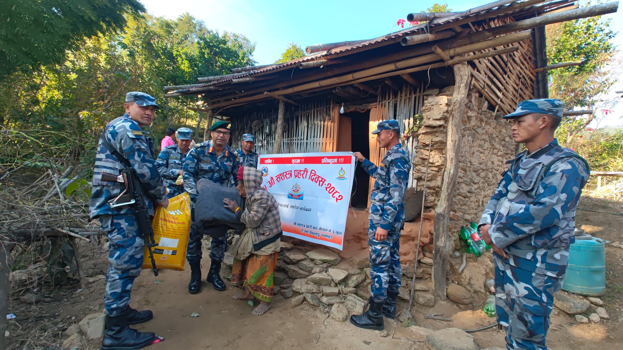 धनकुटा नगरपालिका ४ की ८२ वर्षीया विपन्न तथा एकल महिला राजेश्वरी आठपहरियालाई सशस्त्र प्रहरीले खाद्यान्न तथा लत्ताकपडा वितरण गरेको हो। गुल्मपति प्रेमप्रसाद सिग्देलको नेतृत्वको टोलीले ती महिलाको घरमै पुगेर सहयोग सामग्री हस्तान्तरण गरेको थियो । स्थापना दिवसको अवसरमा सामाजिक उत्तरदायित्वअन्तर्गत मानवीय सेवामा जोड दिँदै असहाय तथा विपन्न वर्गलाई सहयोग गरिएको गुल्म पति सिग्देलले जनाए । यस्ता सहयोगात्मक गतिविधिले समुदायसँग सशस्त्र प्रहरीको सम्बन्ध थप सुदृढ हुने विश्वास व्यक्त गरे । कार्यक्रममा गुल्मपति प्रेमप्रसाद सिग्देल, नेपाल पत्रकार महासंघ धनकुटाका अध्यक्ष विदुर खवास, पत्रकार विनोद घिमिरे लगायतको उपस्थिती रहेको थियो ।