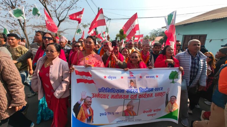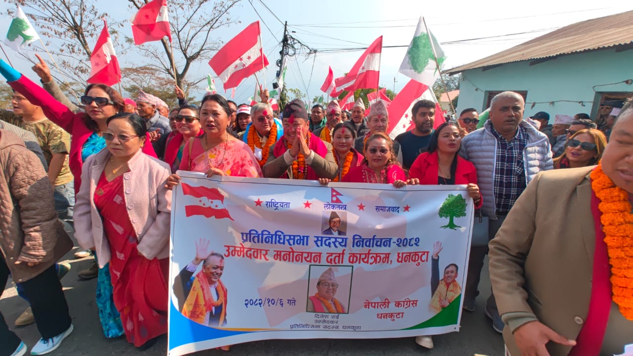 फागुन २१ गते हुने प्रतिनिधि सभा सदस्य निर्वाचनका लागि धनकुटामा नेपाली काग्रेसबाट दिनेश राइ उम्मेदवार । फोटो फिचर