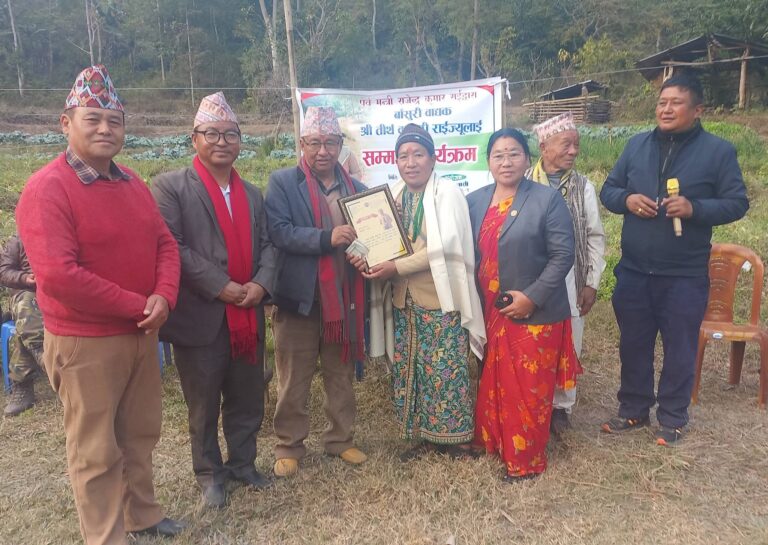 नेकपा एमालेका केन्द्रीय सदस्य एवं पूर्वमन्त्री राजेन्द्रकुमार राईले धनकुटाकाे सहिदभूमिकी वाँसुरीवाधक तीर्थकुमारी राईलाई सम्मान गरेका छन । सहिदभूमि-१ सफाइटारकी बाँसुरीवाधक ४५ वर्षीया तीर्थकुमारीलाई आज गाउँमै पुगेर पूर्वमन्त्री राईले सम्मान गरेकन हुन । सम्मानका लागि आयाेजित कार्यक्रममा पूर्वमन्त्री राईले दाेसल्ला ओढाएर सम्मानपत्र र नगद प्रदान गरी बाँसुरीवाधक राईलाई सम्मान गरे। साे अवसरमा सहिदभूमि गाउँपालिका अध्यक्ष मनाेज राईले पनि तीर्थकुमारीलाई प्राेत्साहनस्वरुप ५ हजार नगद प्रदान गरे । साे अवसरमा पूर्वमन्त्री राईले तीर्थकुमारीकाे बाँसुरीवादन कलाकाे प्रशंसा गर्दै गाउँमा लुकेकाे प्रतिभालाई प्राेत्साहन गर्न सम्मान गरिएकाे बताए । कार्यक्रममा वाेल्दै पूर्वमन्त्री एवं प्रदेश सभा सदस्य निरन राई, सहिदभूमि गाउँपालिका अध्यक्ष मनाेज राई लगायतले लुकेकाे प्रतिभालाई प्राेत्साहन र उजागर गर्न पूर्वमन्त्री राईले महत्वपूर्ण काम गर्नुभएकाे भन्दै उनकाे प्रशंसा गरे ।