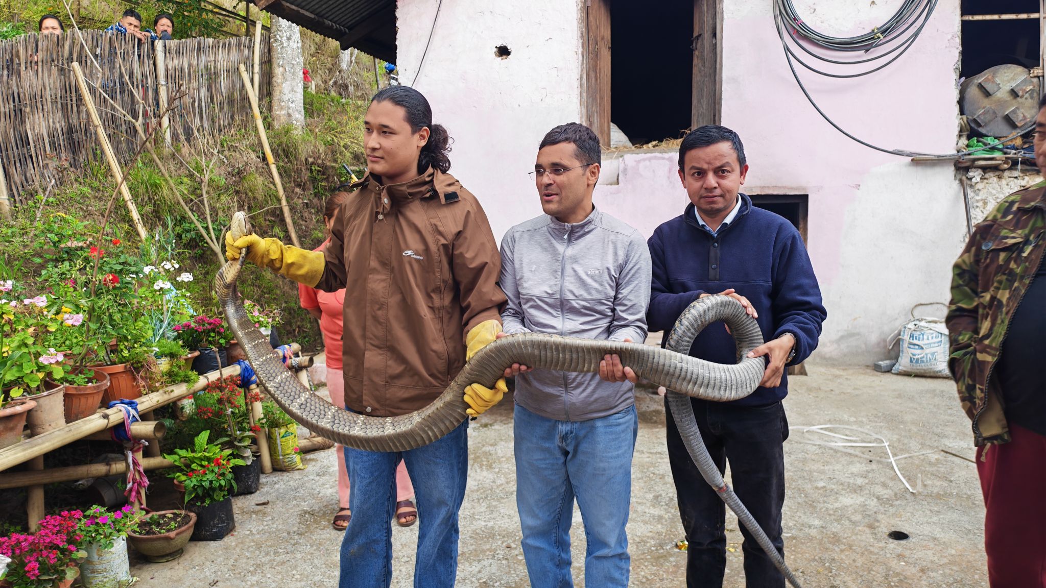 धनकुटा नगरपालिका ३ र ६ को सिमाना पर्ने कागते क्षेत्रमा करिब १३ फिट लामो राजगोमन सर्प तीन दिनसम्म गोठमै बसिरहेको अवस्थामा भेटिएको हो। स्थानीयले सूचना दिएपछि महालक्ष्मी नगरपालिका–५ लेगुवाका सर्प उद्धारकर्मी प्रदीप श्रेष्ठले शनिबार जोखिमपूर्ण तरिकाले सर्प नियन्त्रणमा लिएको धनकुटा नगरपालिका वडा नं ३ का अध्यक्ष विकास घिमिरेले जानकारी दिए ।